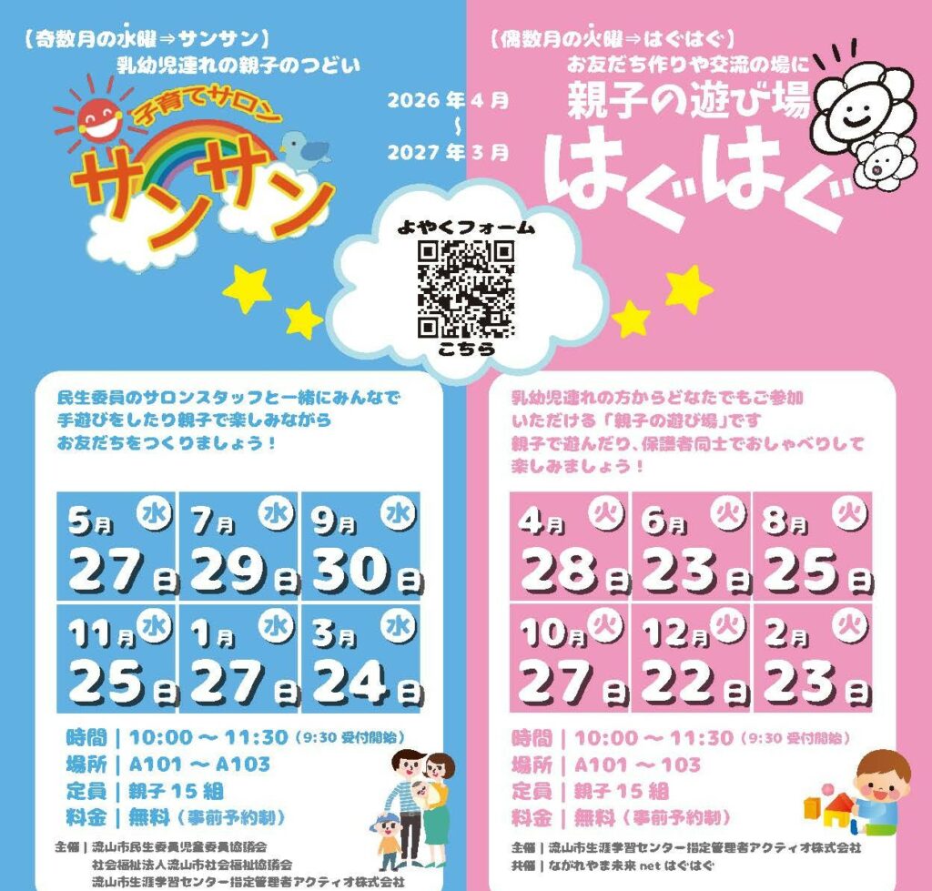 【はぐはぐ第4火曜に変更】子育てサロン はぐはぐ WEB申込受付中!