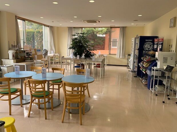 パン・お菓子などの軽食販売・冷凍弁当・ジュースの自動販売機を設置。持ち込みでの飲食もできます。電子レンジもご利用いただけます。